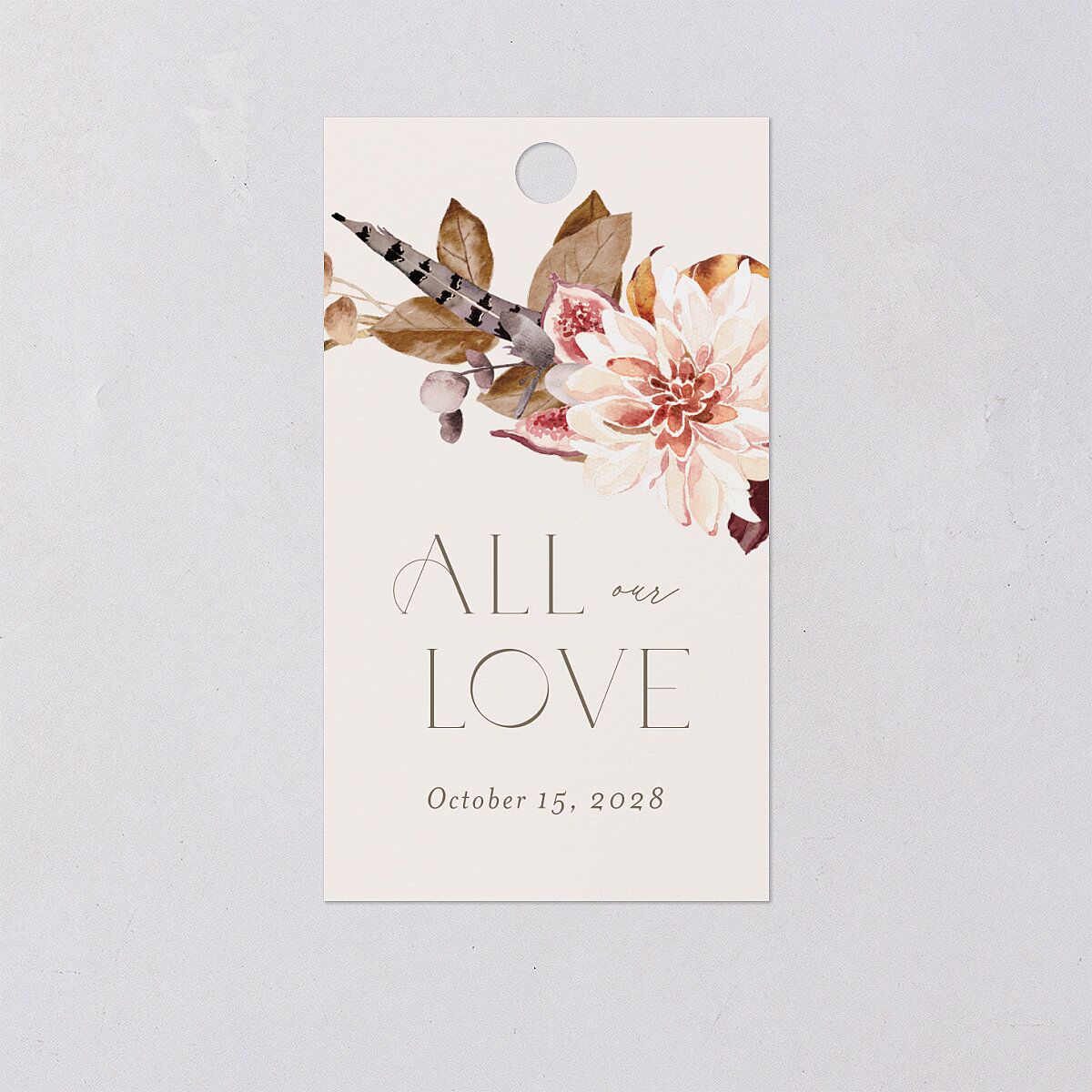 Help your guests create fond memories of your romantic milestone. The floral adornment on the front of these wedding favor gift tags adds some classic elegance, while the eclectic fonts creates a contemporary feel. On the reverse, your loved ones will read a thoughtful message of gratitude, thanking them for their presence.