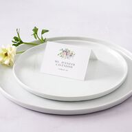 Let your guests know that they're in for a lavish celebration! Each guest's name and table assignment sweeps across these place cards in formal serif typography. Cresting the top are painted wisteria garden flowers, giving off romantic, Bridgerton-inspired vibes. Select how many cards you would like printed and after you’ve placed your order, a designer will send you a spreadsheet to fill out your guests' names. After you’ve placed your order, send your completed spreadsheet to help@theknot.com with your order number included in your email, and a designer will send you a digital proof of all of your cards before printing.