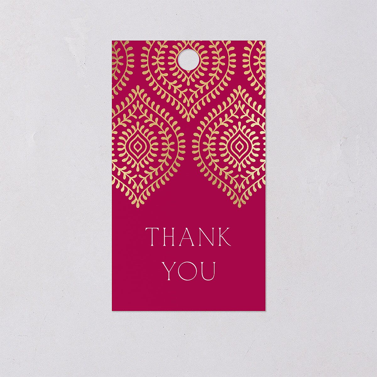 Your favor gift tags feature a simple floral fan pattern framing your names. Underneath the elevated design lies a mix of elegant fonts displaying your address.