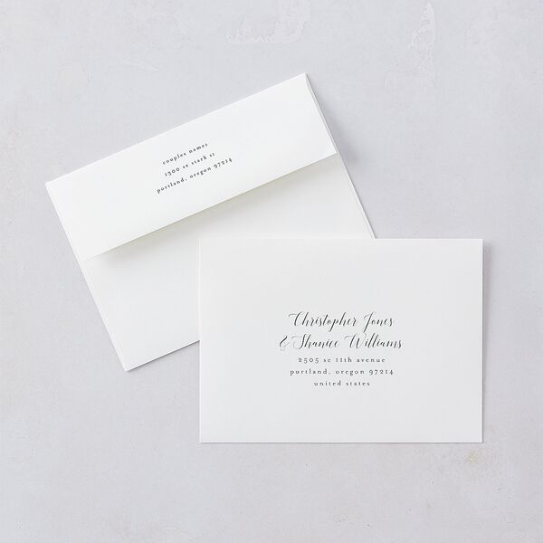 Complete your suite with our customizable colored envelopes, designed to add a pop of personality to your wedding stationery. Available in a wide range of hues to complement your theme or color palette, these vibrant envelopes pair nicely with liners for a one-of-a-kind design that's uniquely yours