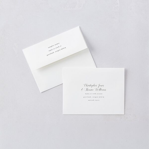 Complete your suite with our customizable colored envelopes, designed to add a pop of personality to your wedding stationery. Available in a wide range of hues to complement your theme or color palette, these vibrant envelopes pair nicely with liners for a one-of-a-kind design that's uniquely yours