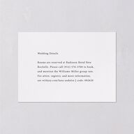 This minimalist wedding enclosure card features a subtle color palette. Your wedding information is presented in a simple and stylish font against a a blank background. The words "We Can't Wait" appear in italic typography on the back.