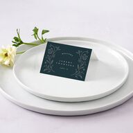 Ornate floral illustrations frame these place cards, adding an element of timeless glamour to any tablescape. Your guests' names and table numbers are outlined in serif and italic fonts.