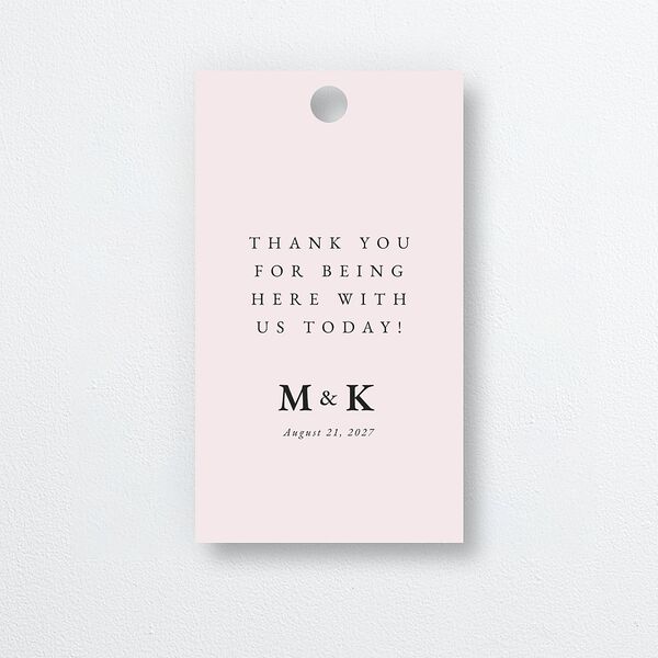 This charming wedding favor gift tag features space for you to include a personalized thank-you message, with your couple monogram tucked below. The back displays an elegant hanging wisteria design, which is displayed in a complementary color.