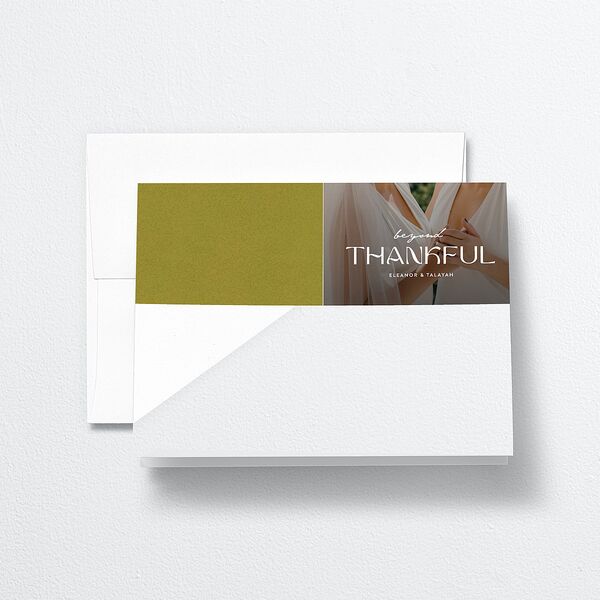 Your favorite wedding portrait is featured on these chic thank you cards. “Beyond thankful” is displayed in a mix of stylish fonts along with your names at the bottom of the card.