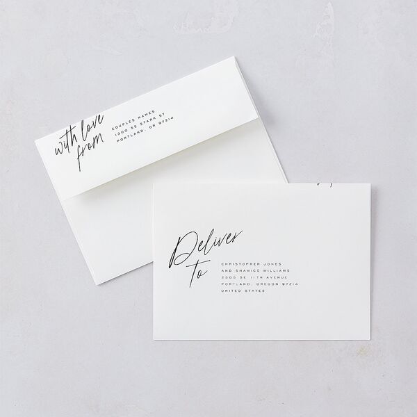 Complete your suite with our customizable colored envelopes, designed to add a pop of personality to your wedding stationery. Available in a wide range of hues to complement your theme or color palette, these vibrant envelopes pair nicely with liners for a one-of-a-kind design that's uniquely yours